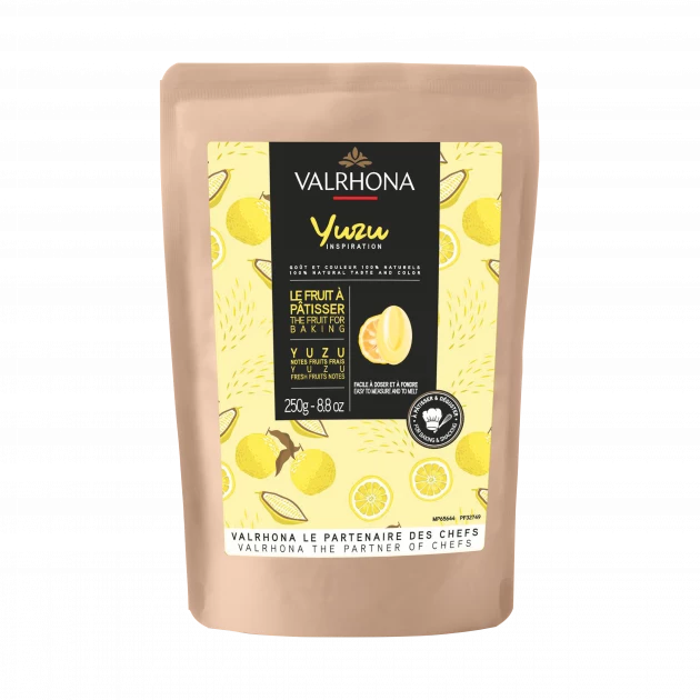 Découvrez l’agrume emblématique du Japon, le Yuzu, sous une forme totalement inédite ! Depuis 2016, la Maison experte du chocolat, Valrhona, a confectionné pour les plus fins gourmets d’entre nous, un Chocolat Inspiration Yuzu sous forme de fèves à la couleur et au goût 100% naturel. Ainsi, nous vous invitons à pâtisser ce fruit aussi facilement que des fèves de chocolat, puisqu’elles se dosent et fondent à la perfection pour une confection optimale de vos plus beaux desserts/plats: gâteaux, tablettes, enrobages, ganaches, glaces, sorbets, moulages, mousses, crémeux, décors…