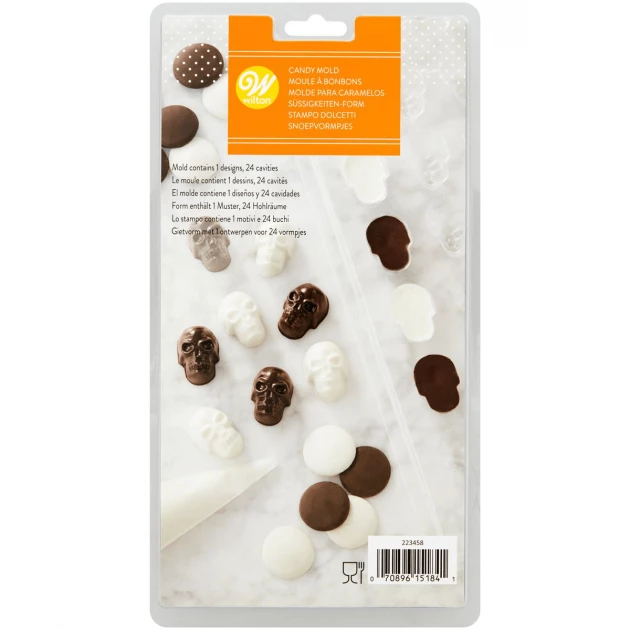 Réalisez des confiseries affreusement gourmandes à l’aide du Moule à Chocolat Tête de Mort ! Ce dernier dispose de 24 petites empreintes. Pour l’utiliser, il n’y a rien de plus simple : faites fondre au micro-ondes des pistoles de chocolat colorées, puis versez-les dans une poche à douille. Vous pouvez ensuite remplir les empreintes du Moule Chocolat Tête de Mort. Un tour au frigo et les chocolats sont prêts à être dévorés ou à orner un gâteau ou un cupcake.